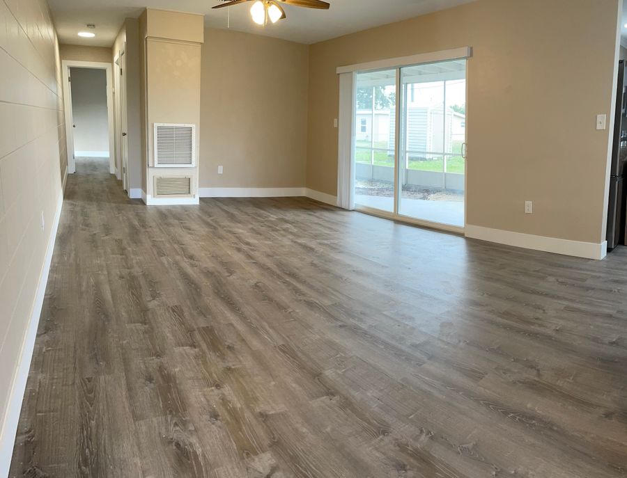 Available NowLarge remodeled 1 bedroom, 1 bath duplex apartment with carport. Vinyl plank flooring throughout, kitchen has stainless appliances and granite counter tops. Bathroom was updated with a walk-in tiled shower. Separate dining area with large windows. Two sliders leading to the large screened lanai. Private fenced yard. Washer and dryer included in the separate laundry room off the kitchen. Impact windows and sliders are being installed soon.